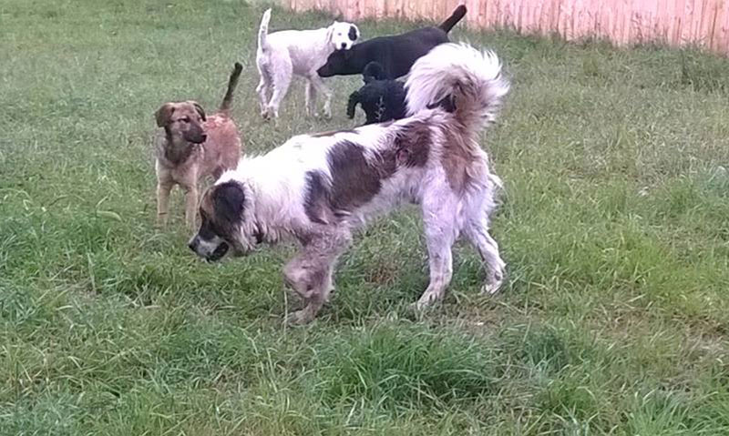 Bandi (sprich Bondo mit offenem o) wurde von uns Mitte Juni 2015 gerettet, weil er von seinem Besitzer schwer geschlagen und misshandelt wurde. Eine Nachbarin hatte das bemerkt und sich gemeldet. Er lebte als Wachhund zumindest tagsüber an einer Kette. Futter bekam er nicht regelmässig, er ist sehr dünn und wacklig auf den Beinen, er kann kaum laufen. Angeblich hat er kleine Kaninchen getötet und gefressen in seiner Not. Dafür wollte man ihn bestrafen. Der Besitzer war froh, den Hund loszuwerden.Jetzt ist er in unserem neuen Tierheim, kann sich von den Misshandlungen erholen und satt fressen. Er wird medizinisch behandelt.